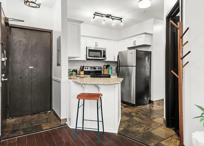 Wraz z udogodnieniami do samodzielnego przygotowywania posiłków, takimi jak pełnowymiarową kuchnią, Apartament Stunning Mountain Views - Pool&Hottub - King Bed - Bbq zapewnia gościom jadalnię i jadalnię na świeżym powietrzu. Dworzec autobusowy Canmore Benchlands Trail Overpass znajduje się zaledwie 5 min spacerem od obiektu noclegowego. Ponadto dostęp do prywatnego basenu kąpielowego zapewnia relaksujący pobyt.